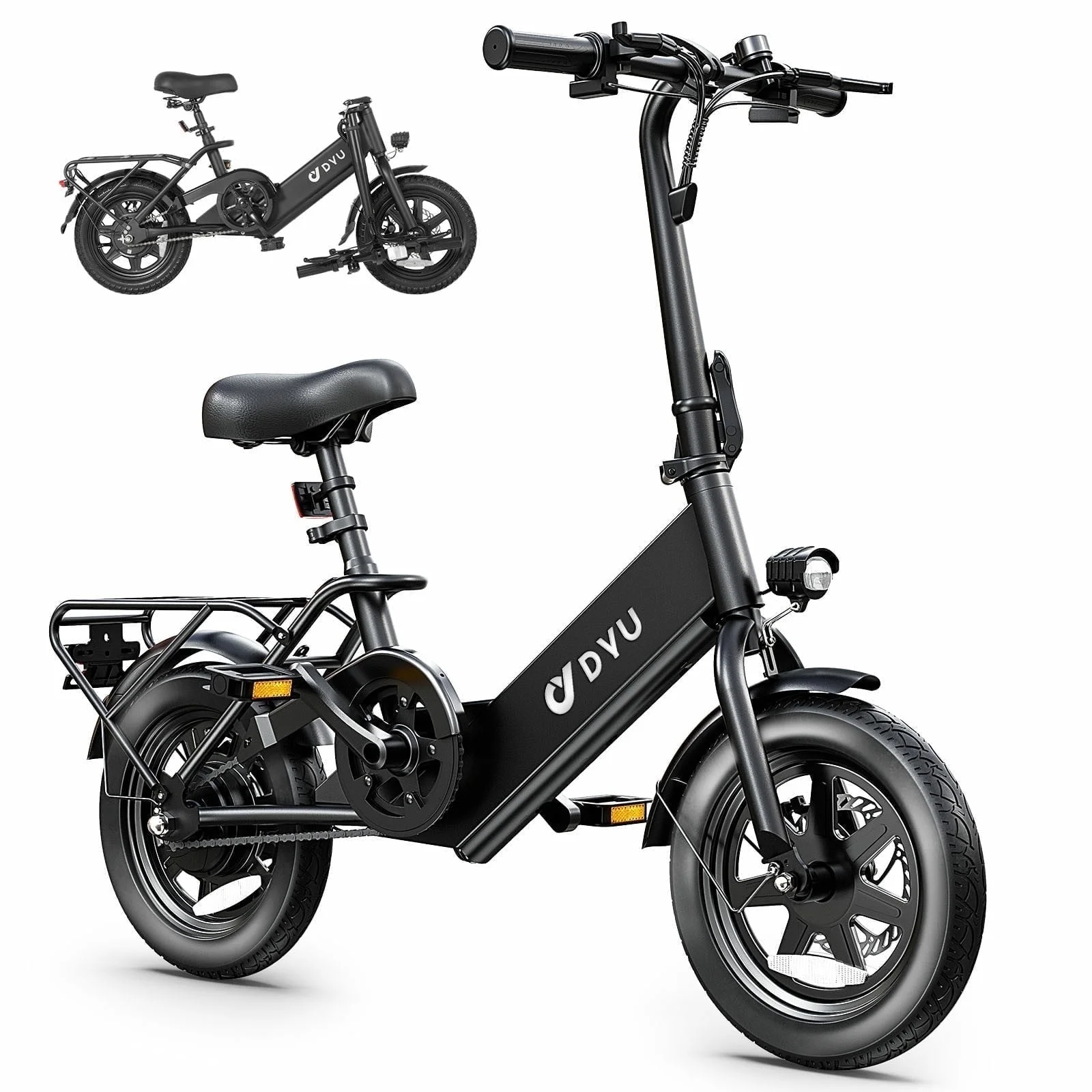 This 14-inch folding electric bike features a 350W motor (500W peak); 36V 7.5Ah Li-ion battery; and pedal-assist for efficient urban commuting. With speeds up to 15.5 mph and dual disc brakes for safety; it delivers up to 30 miles in pedal-assist mode. Lightweight and foldable in 3 seconds; it supports up to 265 lbs and is 90% pre-assembled for quick setup. Ideal for students; professionals; or last-mile riders seeking a compact transportation solution.