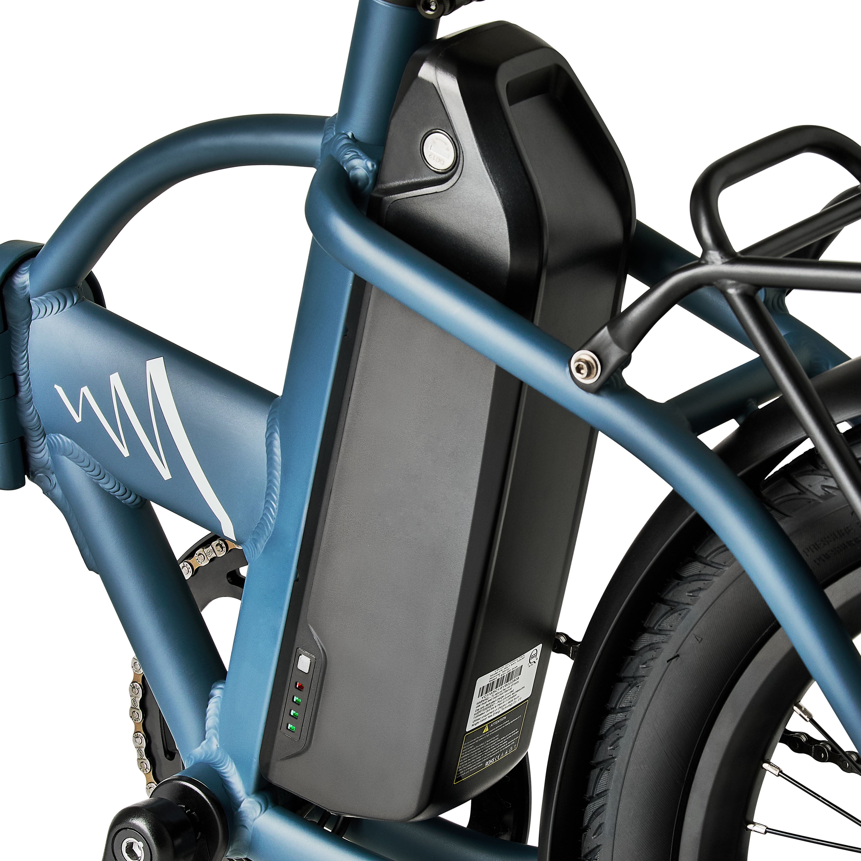 This Class 2 e‑bike reaches speeds up to 20 mph and features Shimano Tourney 7‑speed gearing, mechanical disc brakes, and internal cable routing for a clean, sleek look. Folding pedals, a rear rack, fenders, and a front LED light add to its practicality and everyday convenience.
