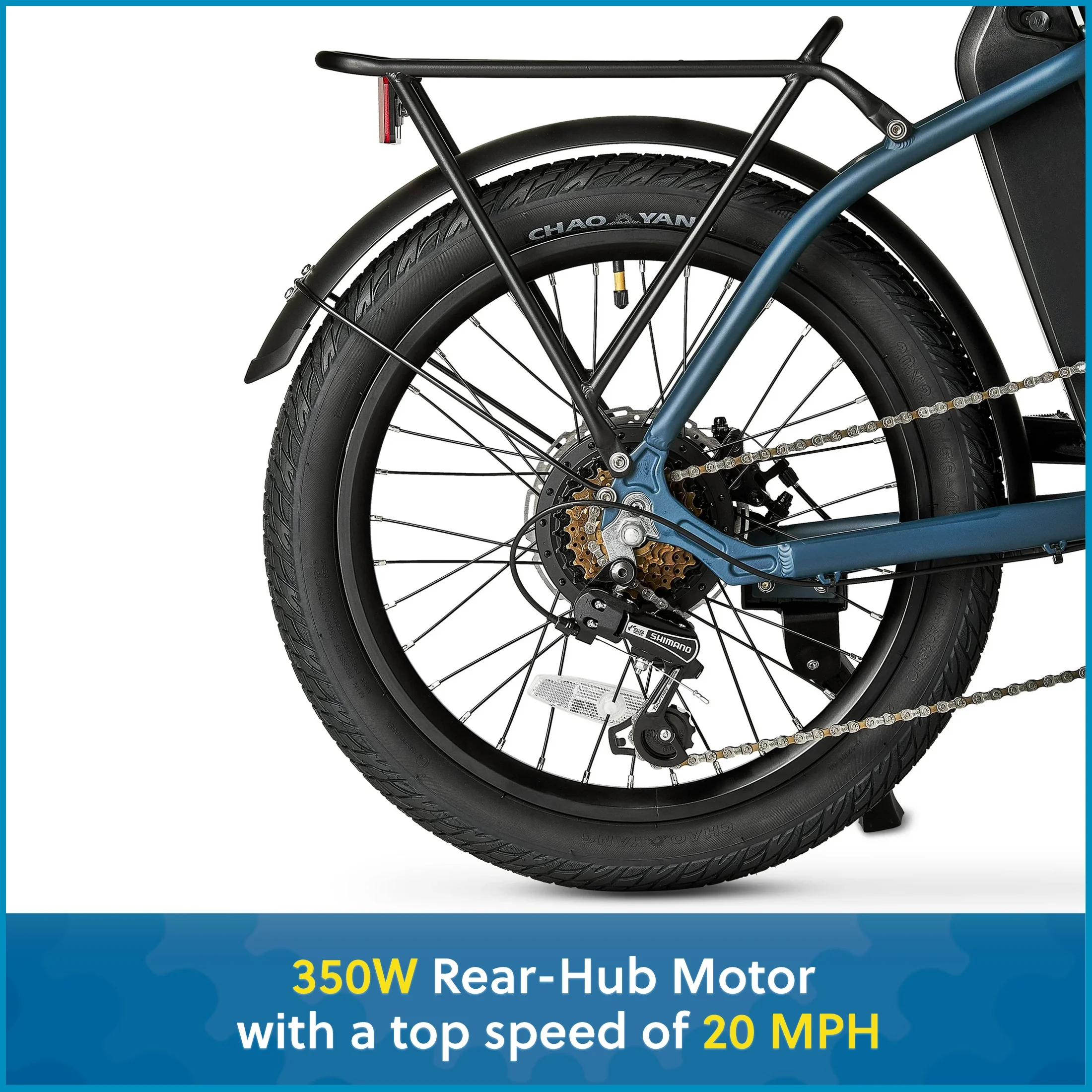 Tires: 20″ × 2.2″ Chaoyang with double‑wall alloy rims