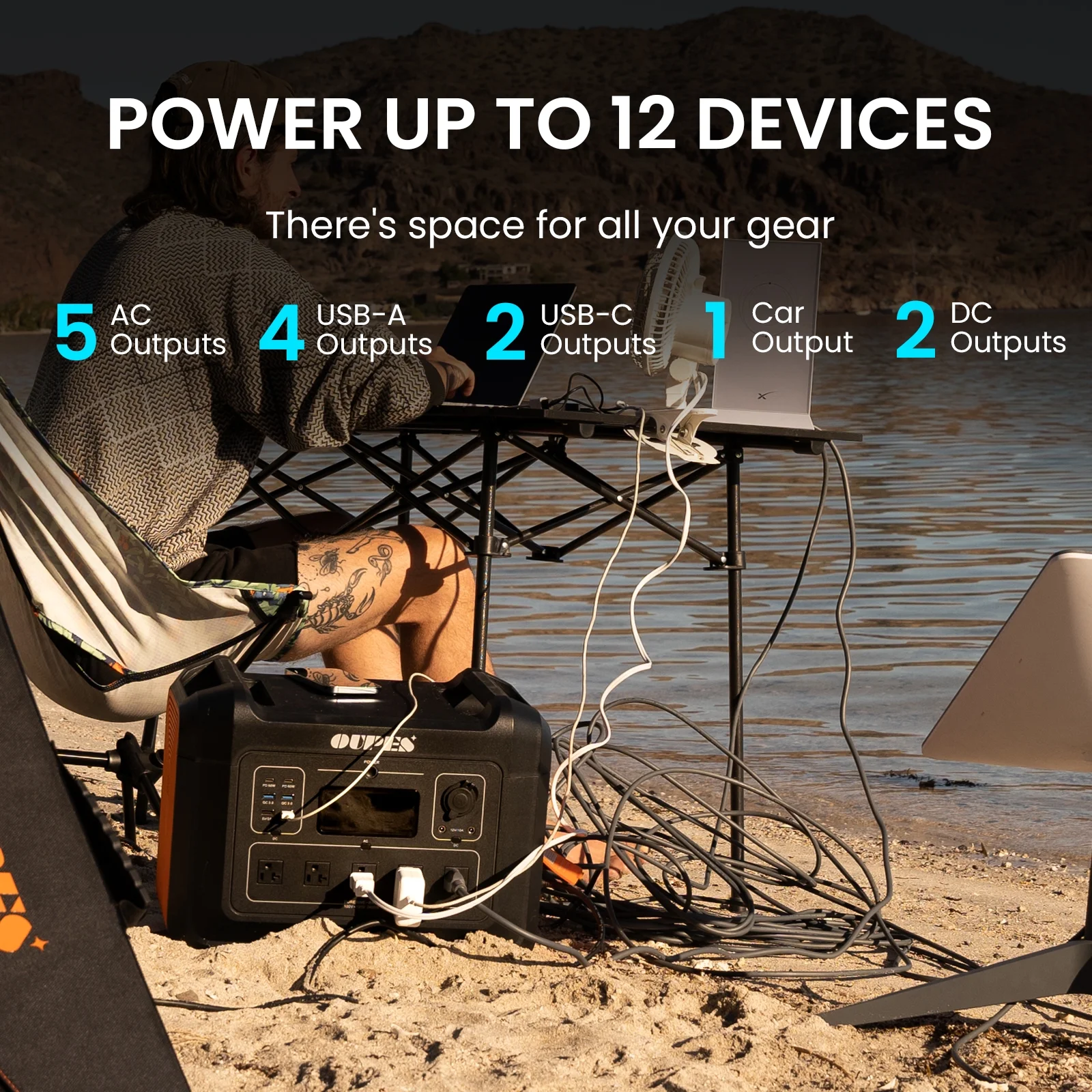 The OUPES 2400W Solar Generator Kit pairs a 2232Wh LiFePO4 portable power station with a 240W solar panel to deliver reliable energy for RV trips, camping, and emergency home backup. Equipped with 5× 2400W AC outlets and a total of 14 output ports, it powers everything from mini‑refrigerators to LED lighting and high‑draw appliances.