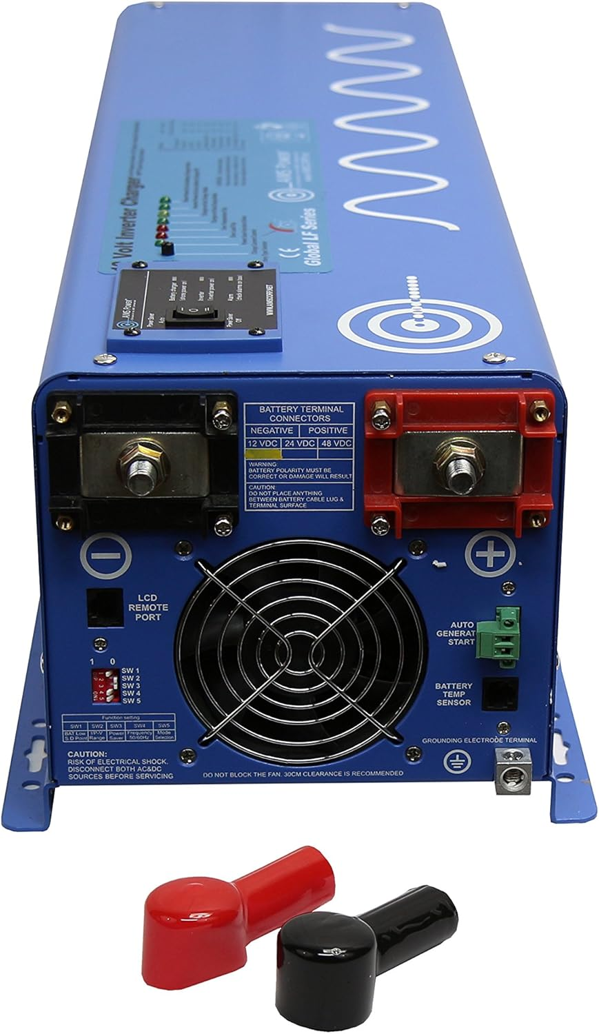 - POWERFUL: 6000W continuous, 18000W surge for 20 seconds, 48VDC, 50 amps, 120VAC pure sine clean power, low frequency, auto transfer switch and 60A smart battery charger for 8 different battery technologies including Lead, Gel, AGM, LiFePO4 and more.