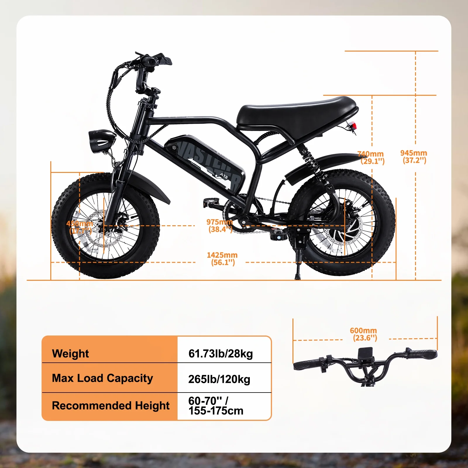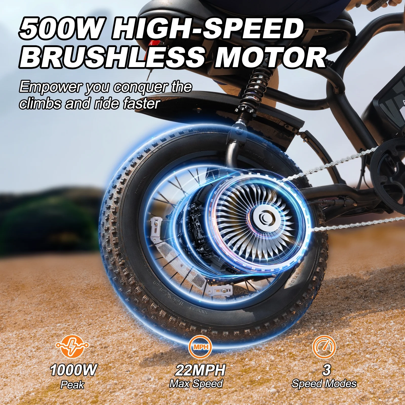 The AVDL 16″ Fat Tire Ebike is designed for riders under 5′2″ and teens seeking a compact yet powerful electric bike. A 500W high‑speed motor delivers up to 21.7 mph, and the 48V 12Ah removable battery provides up to 38 miles of pure electric riding or 55 miles with pedal assist.