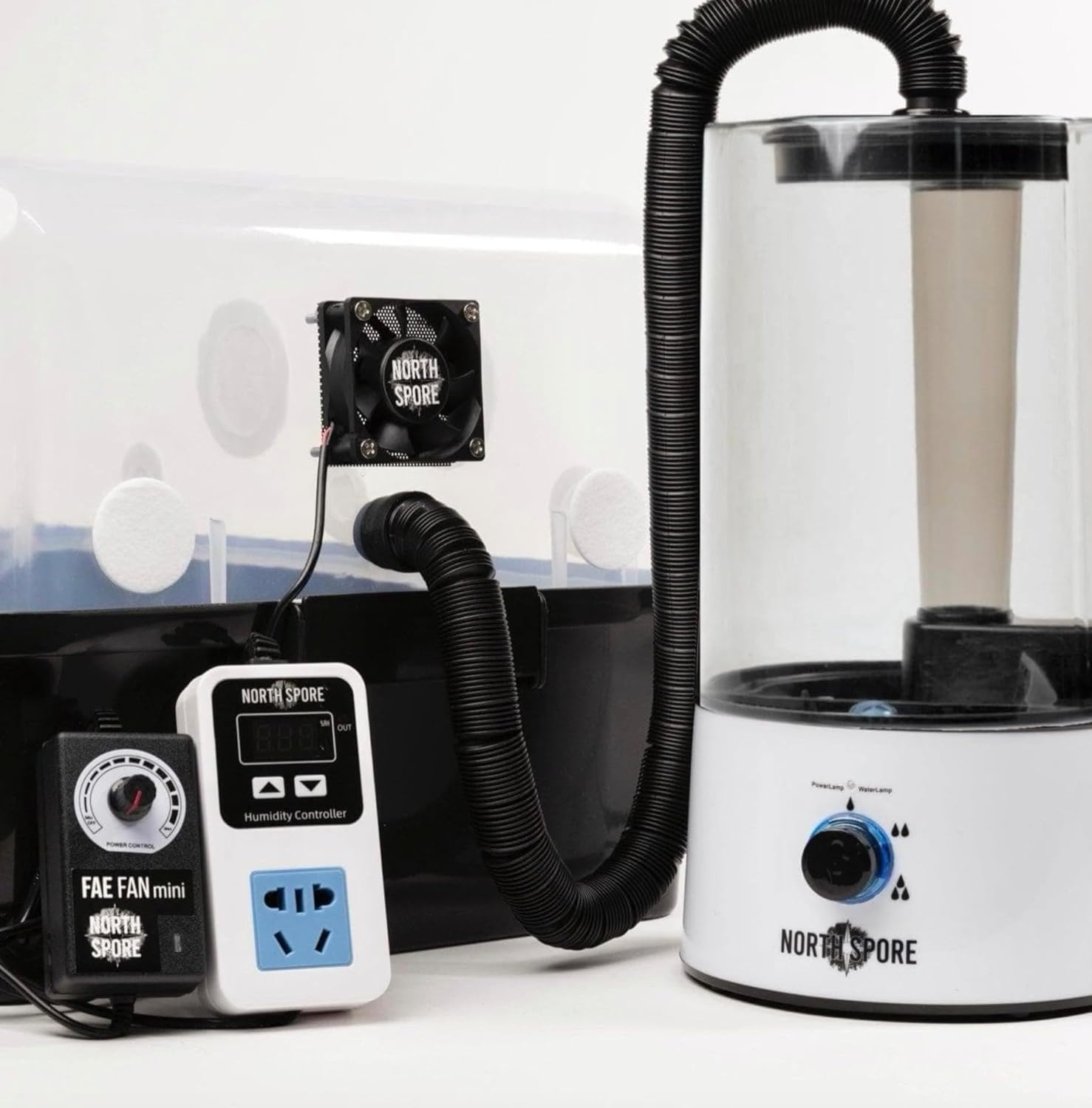 This automation kit upgrades a standard Boomr Bin monotub to provide improved control over humidity, airflow, and CO₂ levels. Each component is compact and simple to install, allowing growers to create an optimized environment for consistent mushroom production. It is suitable for hobbyists and small-scale growers seeking to improve flushes and yields.