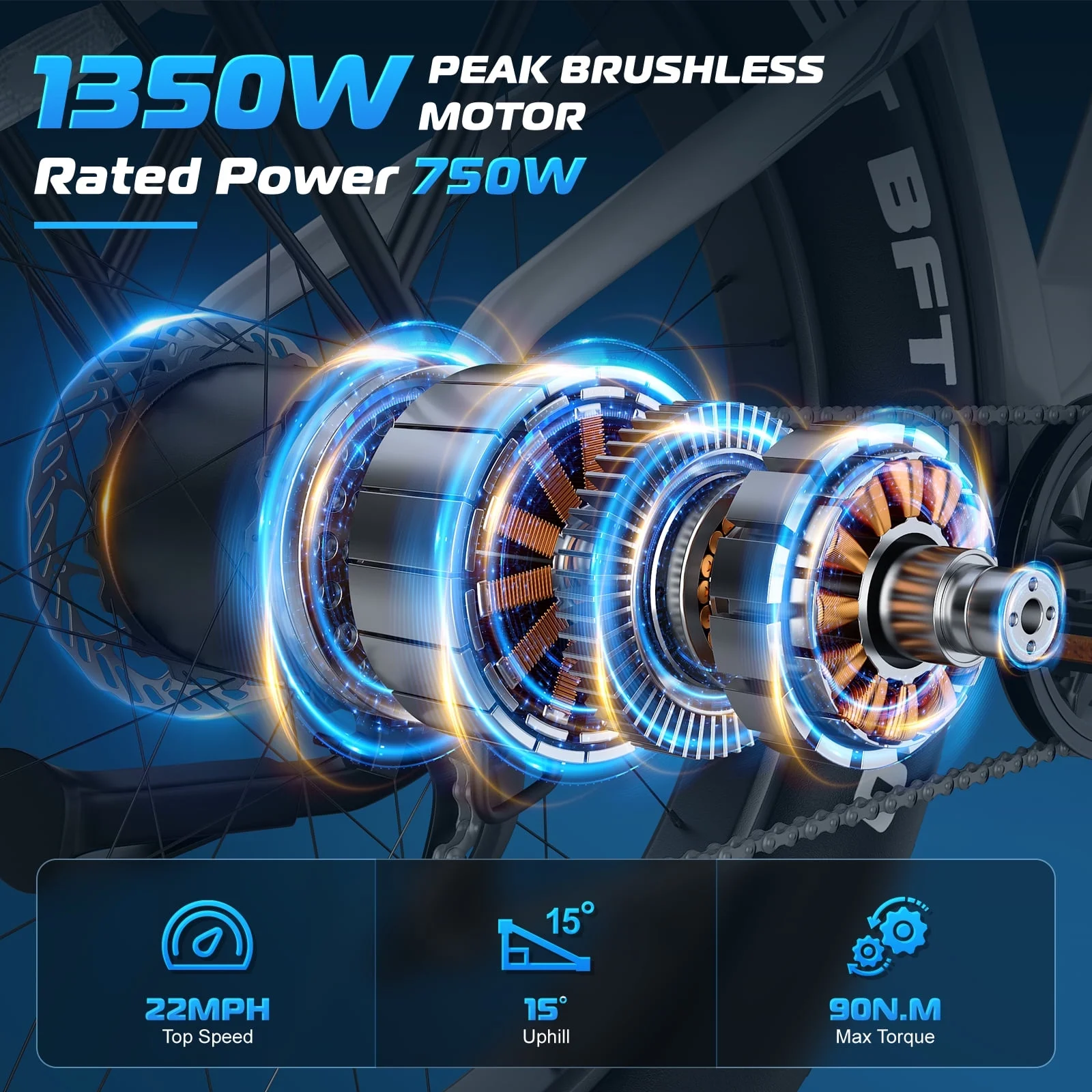 Motor: 750W powerful brushless hub