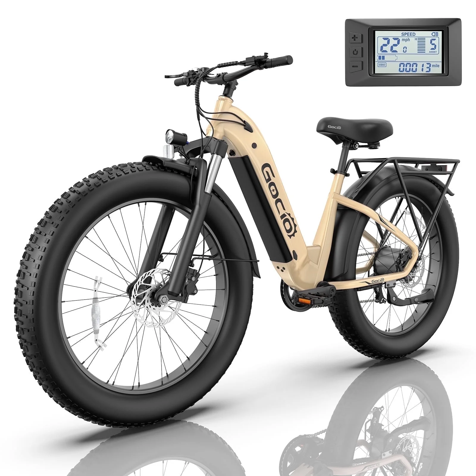 Tires: 26″ × 4.0″ fat tires for all‑terrain stability