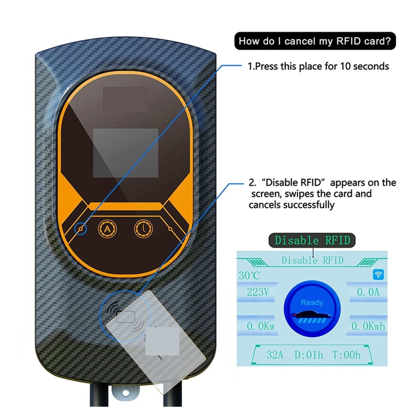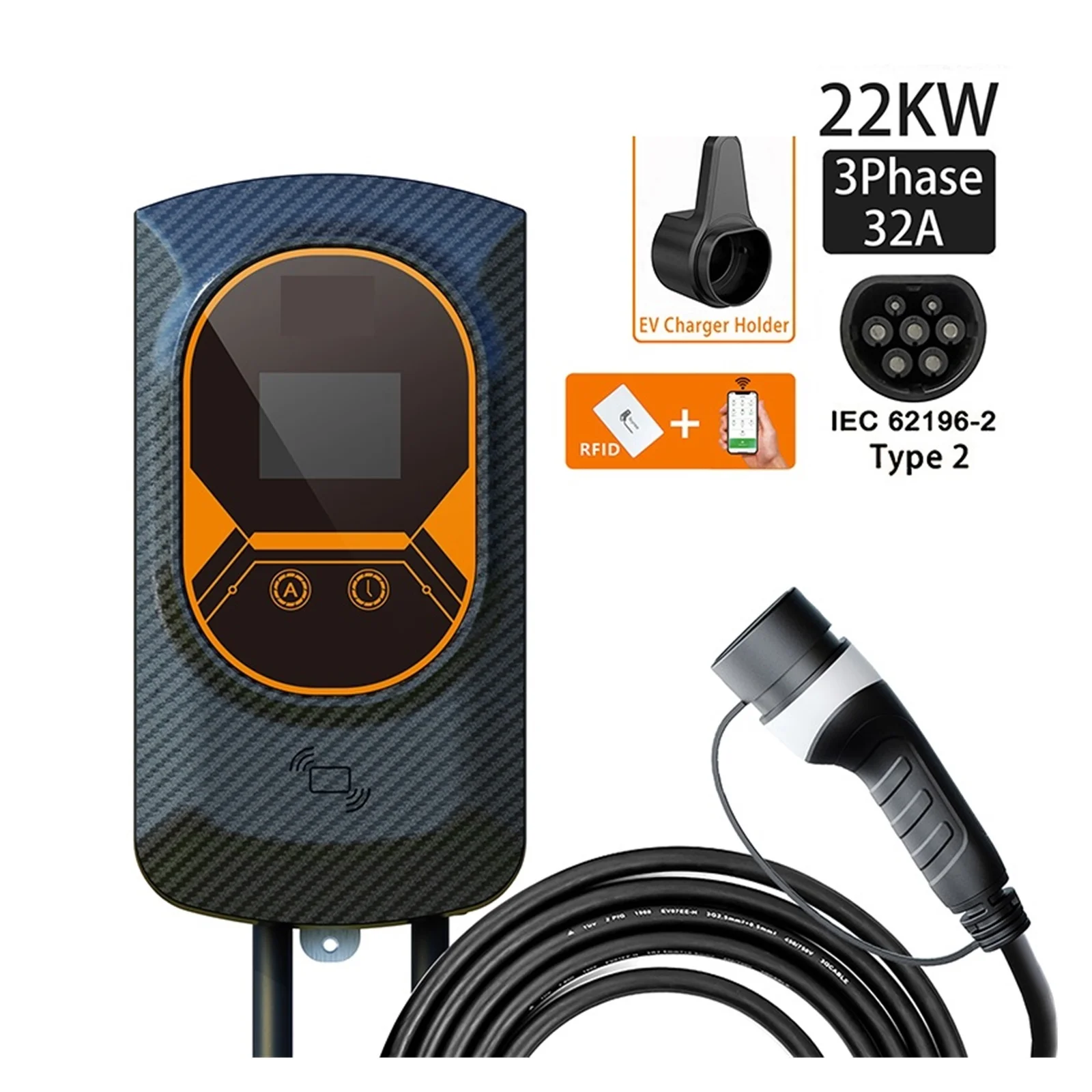 This wall-mounted EVSE charging unit supports 32A output and offers selectable power capacities of 7.6kW; 11kW; or 22kW. Designed with a Type 2 IEC 62196 cable and smart chip; it provides intelligent charging control; real-time monitoring; and scheduling through the Tuya Smart app. Featuring LED status indicators; flame-resistant construction; and IP55-rated weather resistance; its optimized for both residential and commercial installation.