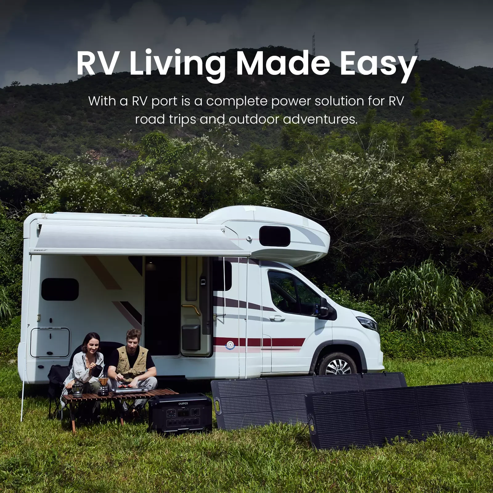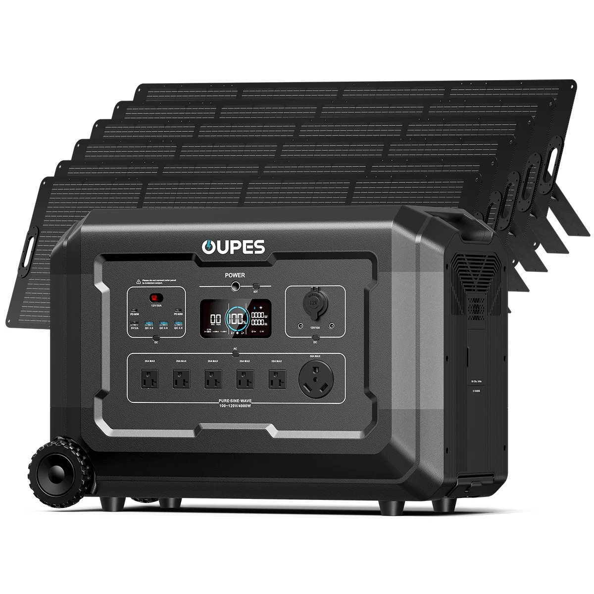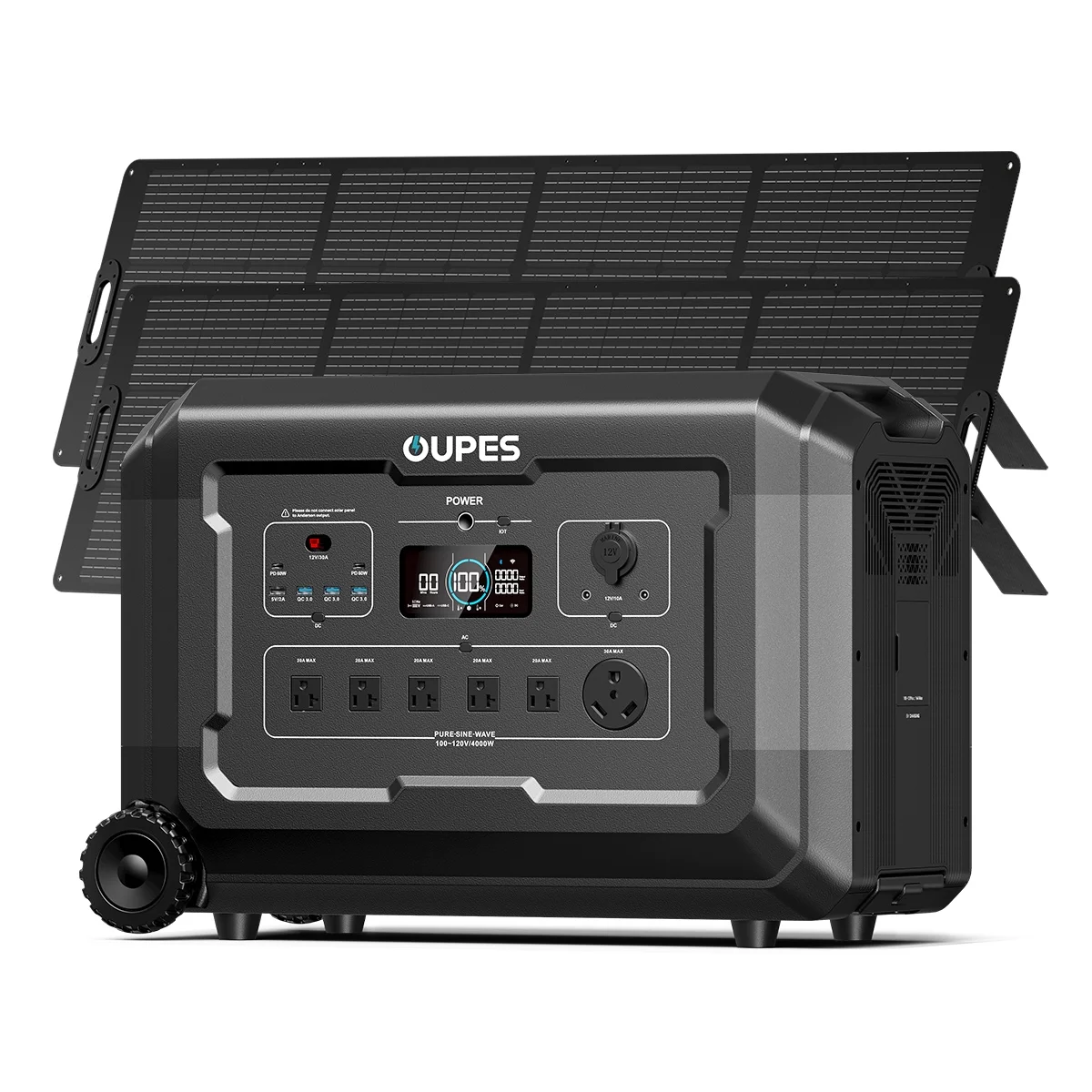 The Mega 5 Power Station integrates a 5040Wh LiFePO4 battery with a 4000W pure sine wave inverter (7000W surge) to supply stable, high‑capacity power for home backup, RVs, and outdoor projects. With 8×240W solar panels included, it delivers a total of 1920W solar input, and with the included B5 expansion battery it reaches a total capacity of 10.08 kWh.