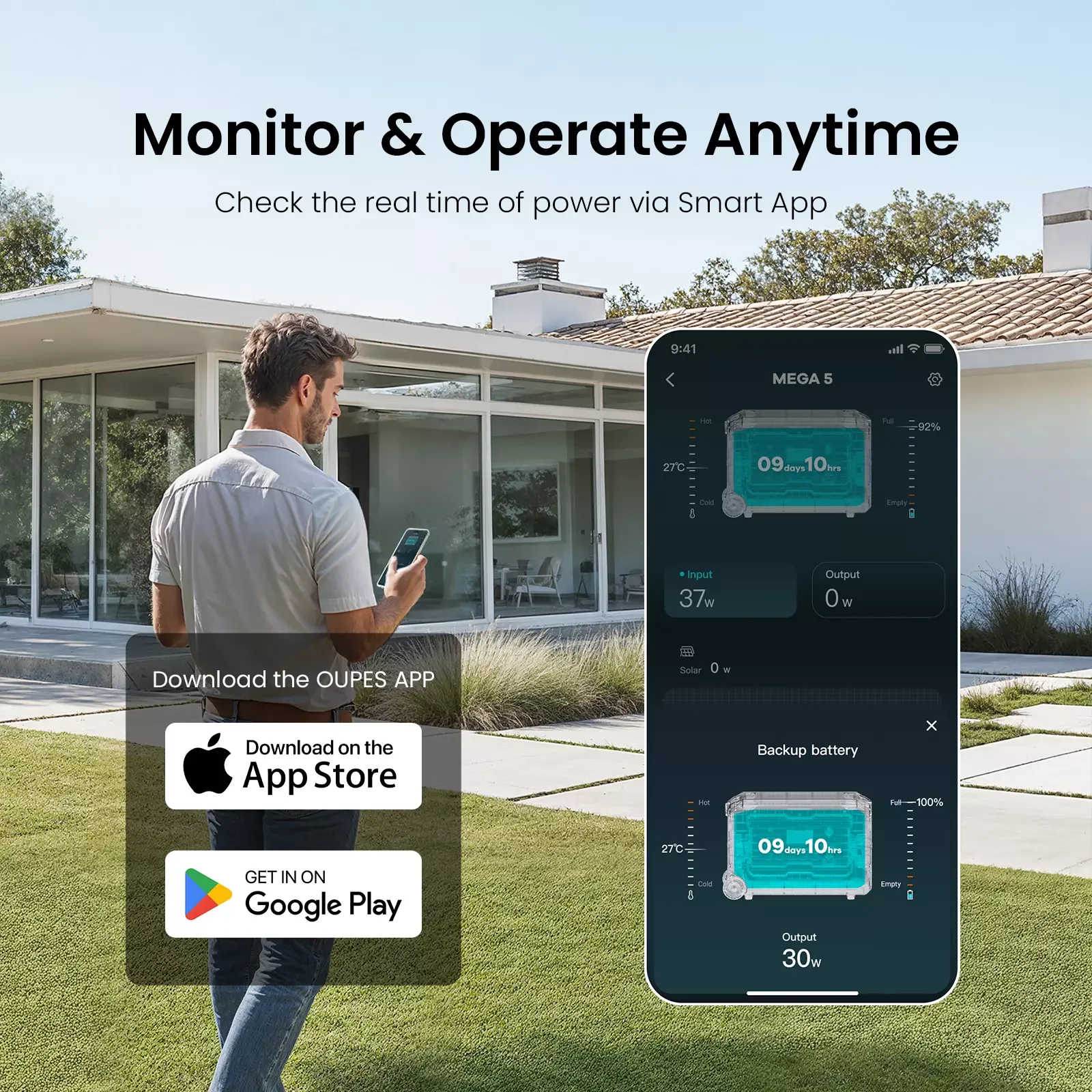 Smart Control: Monitor and control with OUPES app via Wi‑Fi