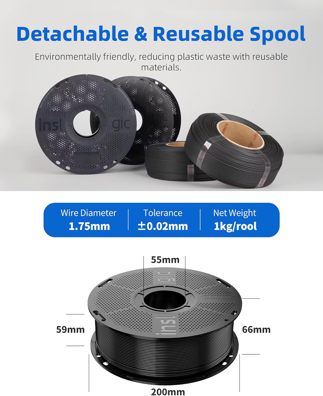 - 【Premium Quality Filament】Inslogic High-Speed PLA with rigorous quality control ensures smooth, refined finishes at high speeds, enhancing the look and feel of your 3D prints.